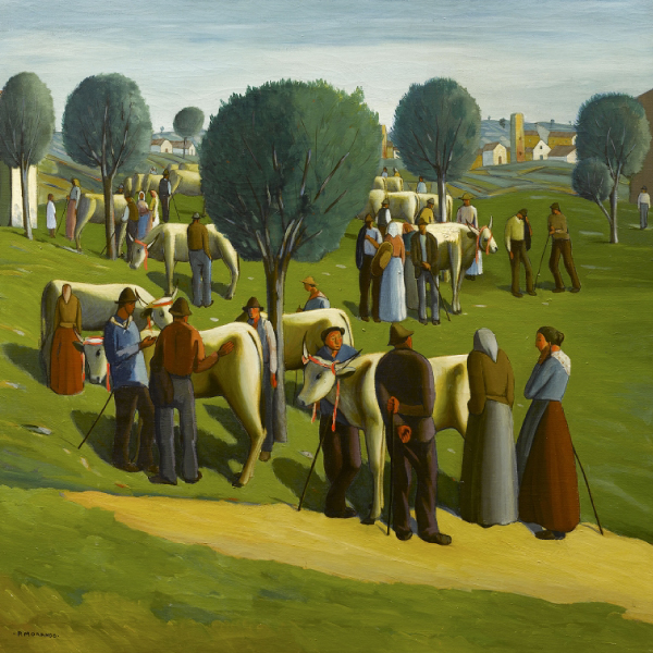 Con i due giovani Cagnaccio ci racconta di uno sforzo che diventa vano poiché il peso da portare è troppo grande, il barcone infatti rimane immobile. Il lavoro preso per disperazione si incastra nel giro delle fatiche e delle illusioni: l’artista sembra rimandare alla metafora della vita in cui l’affanno e la fatica non sono trasferibili, nonostante l’impegno si rischia di rimanere lì, fermi nell’inutile sforzo.