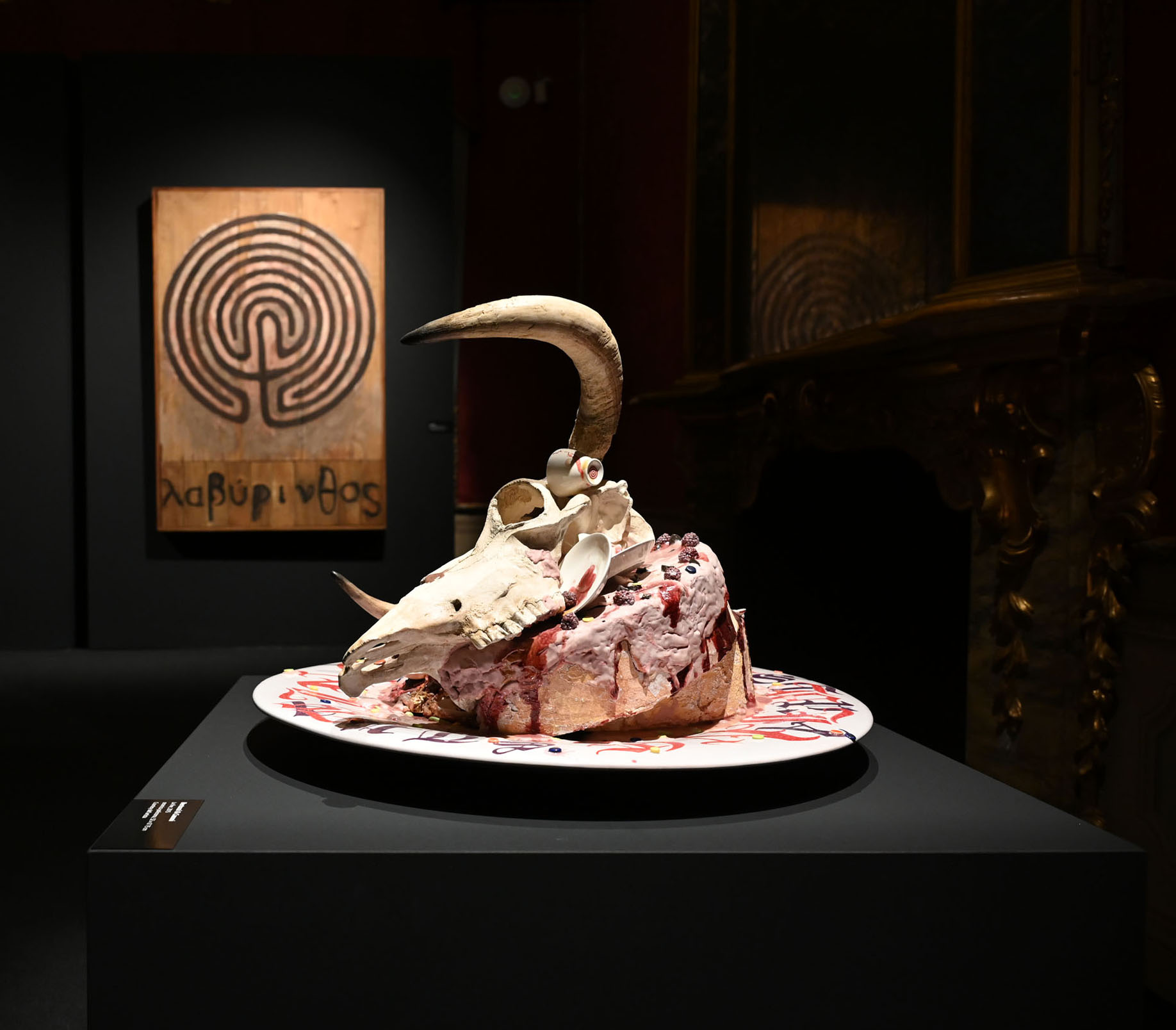 Grazie a un percorso espositivo sorprendente e innovativo, gli stemmi con leoni, grifoni, cigni e altre figure araldiche si confrontano con l’immaginario di Bertozzi & Casoni, Wim Delvoye, Gabriele Arruzzo e Luigi Serafini; i motivi geometrici delle pergamene trovano corrispondenze nelle opere di Cannavacciuolo, Tremlett e Beverly Pepper; segni, trame e linee risuonano nei lavori di Bianchi, Dessì, Boetti e Griffa; simboli enigmatici e arcaici si riflettono nelle visioni di La Pietra, Ontani, Paladino e Tilson; le pergamene segnate dal tempo, tra strappi, cuciture, cancellature trovano una risonanza intensa nelle opere di Isgrò, Novelli e Maria Lai, in un intreccio di scritture, memoria e materia che restituisce al presente la voce viva del passato.
